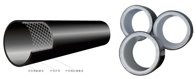 管體由內到外分別為:內芯管、鋼絲增強、熔融體、外保護層